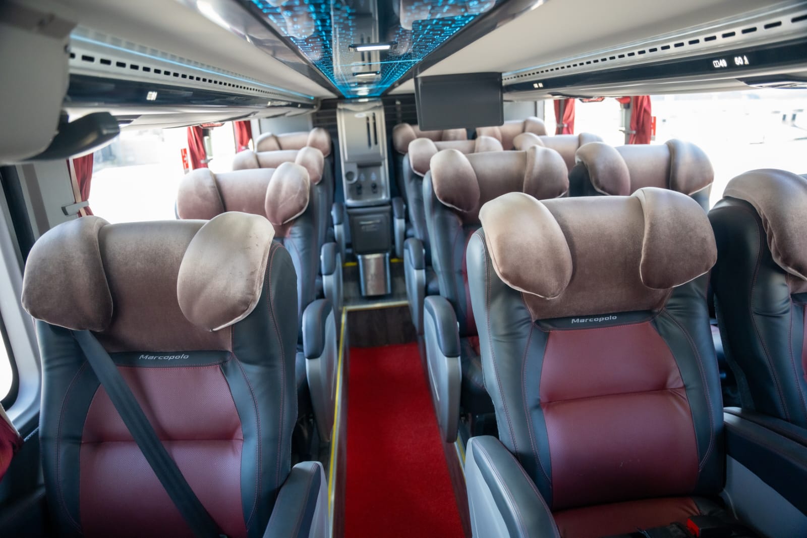 60 lugares, sendo 12 leito + 48 semi leito. Carro completíssimo