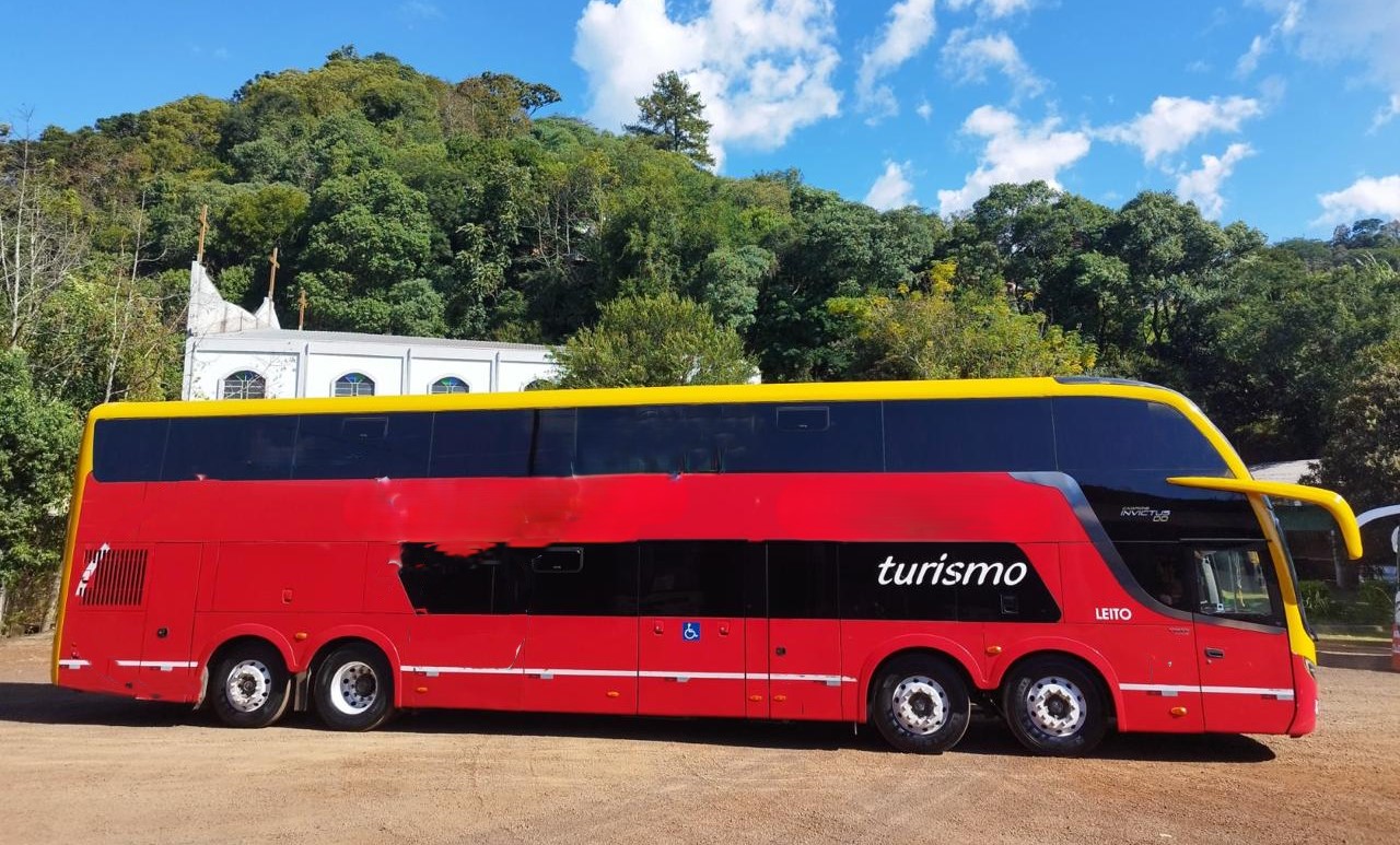 Comil Campione Invictus DD Volvo B450R 8×2 Ano 2019 único dono Km atual 630.000 Ano 2019/2019 único dono Veículo leito total com 40 poltronas Três frigobares