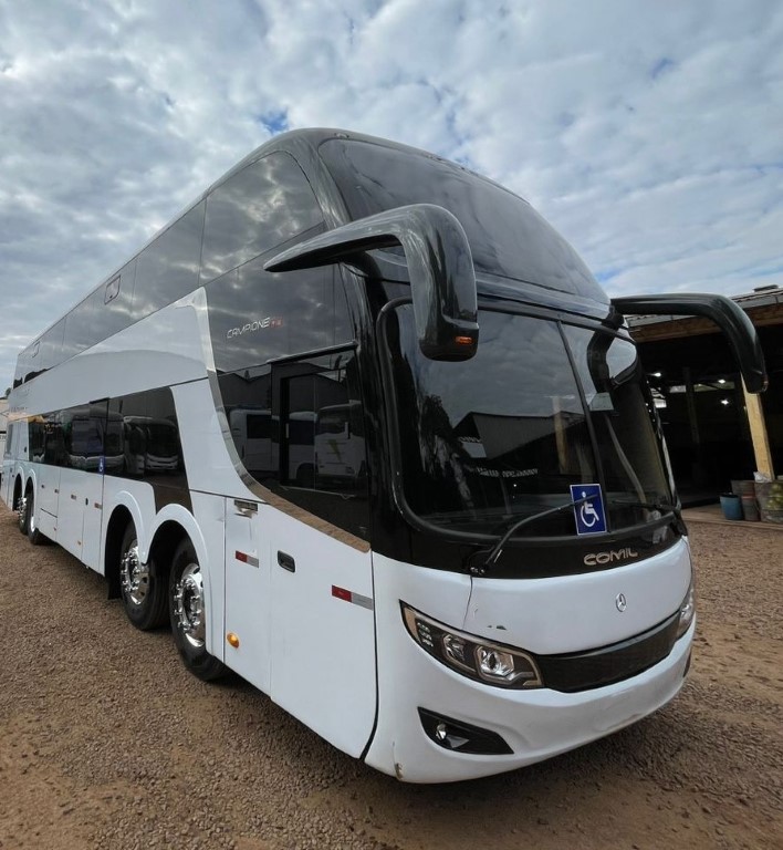 Mercedes Benz O500 8×2, Manual 1.200.000 KM manutenção em dia Comil Campione DD, equipado com 56 poltronas Semi-leito, sala de jogos sobre o rodado dianteiro, telas, DVD, ar condicionado, calefação, WC , ano 2013/2013.